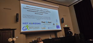 Arī LIFE PeatCarbon komanda piedalījās programmā, un vairāki LIFE PeatCarbon projekta dalībnieki no Somijas Meteoroloģijas institūta, Somijas Dabas resursu institūta un Oulu Universitātes piedalījās seminārā. Hannu Marttila no Oulu Universitātes sniedza referātu par to, kāpēc sānu oglekļa plūsmām ir tik nozīmīga loma kūdrāju kopējā oglekļa bilancē. Viņš norādīja, ka mums joprojām ir tikai ierobežota izpratne par ūdenī izšķīdušā oglekļa kopējo ietekmi, tam pārvietojoties uz kūdrājiem un no tiem ar ūdens starpniecību. Šo procesu ir sarežģīti monitorēt, taču modeļi var sniegt ieskatu ūdens plūsmās gan konkrētās vietās, gan sateces baseina līmenī. Cerams, ka nākotnē mums būs labāka izpratne par to, kā atkārtota mitrināšana maina ūdens noteces ceļus un izšķīdušā oglekļa koncentrācijas.